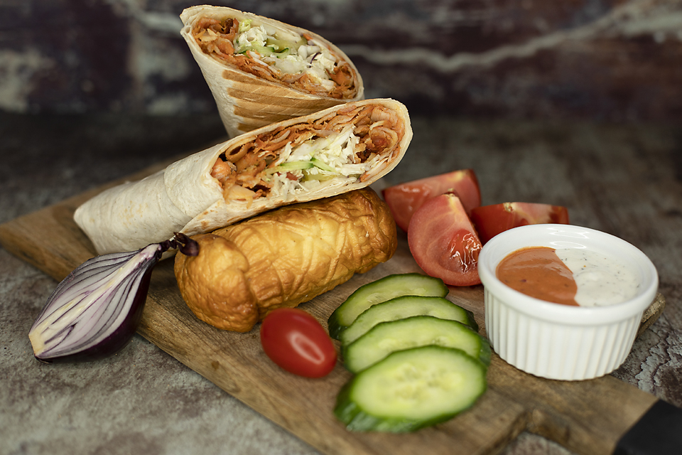 mięso do wyboru (wołowe, kurczak, mix), sezonowa mieszanka sałat i warzyw, oscypek, sos do wyboru (łagodny, średni, ostry, czosnkowy)